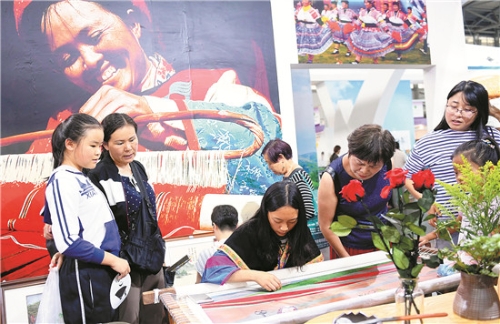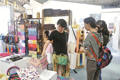 文博会上的民族文化特色用品备受青睐。记者刘凯达摄